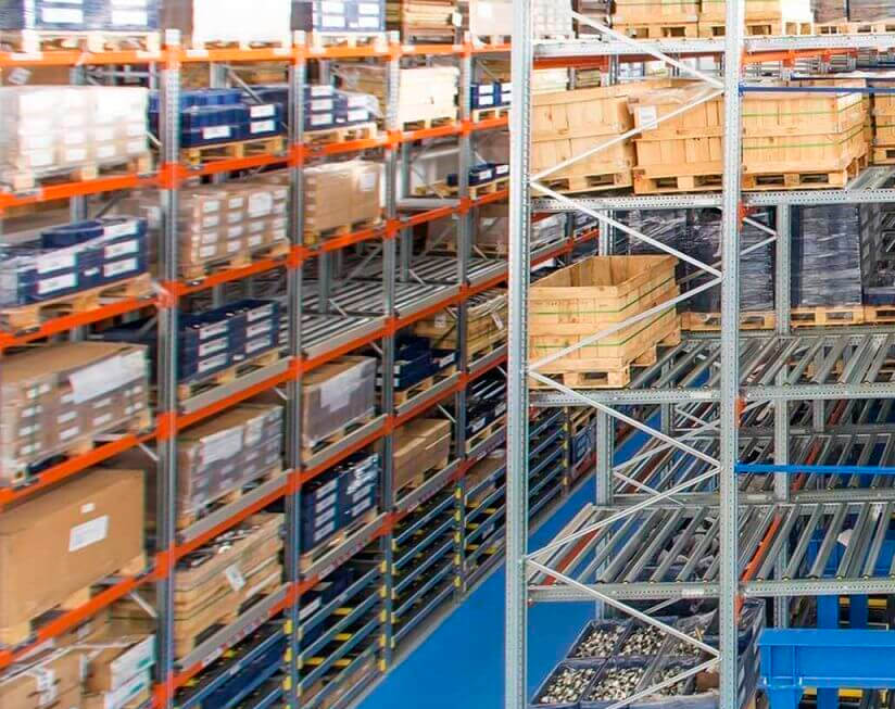 Flujo FIFO por gravedad, ideal para productos con fecha de vencimiento.